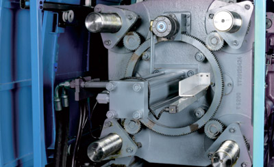 同步液壓精密調(diào)模機構(gòu)液壓馬達驅(qū)動,中心定位齒輪調(diào)模,使調(diào)模運行為更順暢快捷。